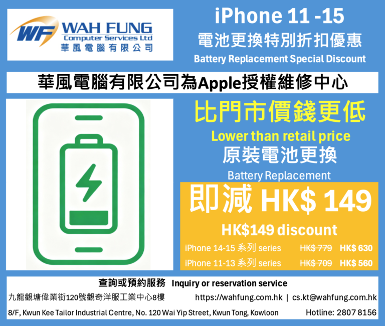 Apple原裝屏幕更換 -HK$120, Apple原裝電池更換 -HK$60