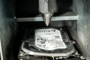 物理實體粉碎 (Physical Shredding): 透過工業級碎紙機將硬碟、SSD 磁碟粉碎成細小碎片,物理上令資料完全無法還原。